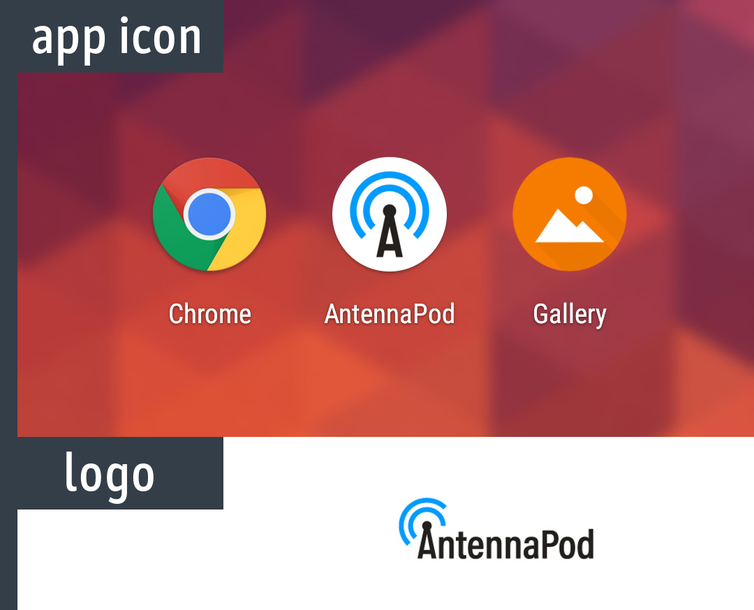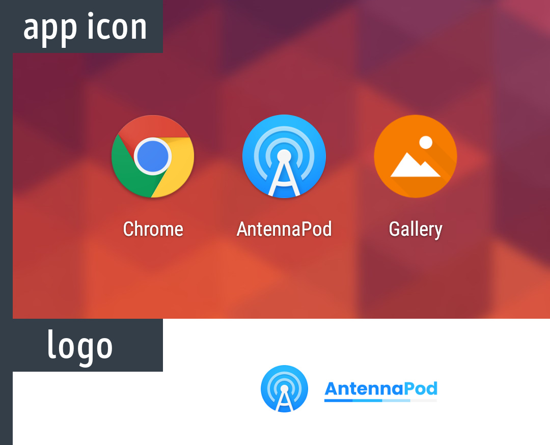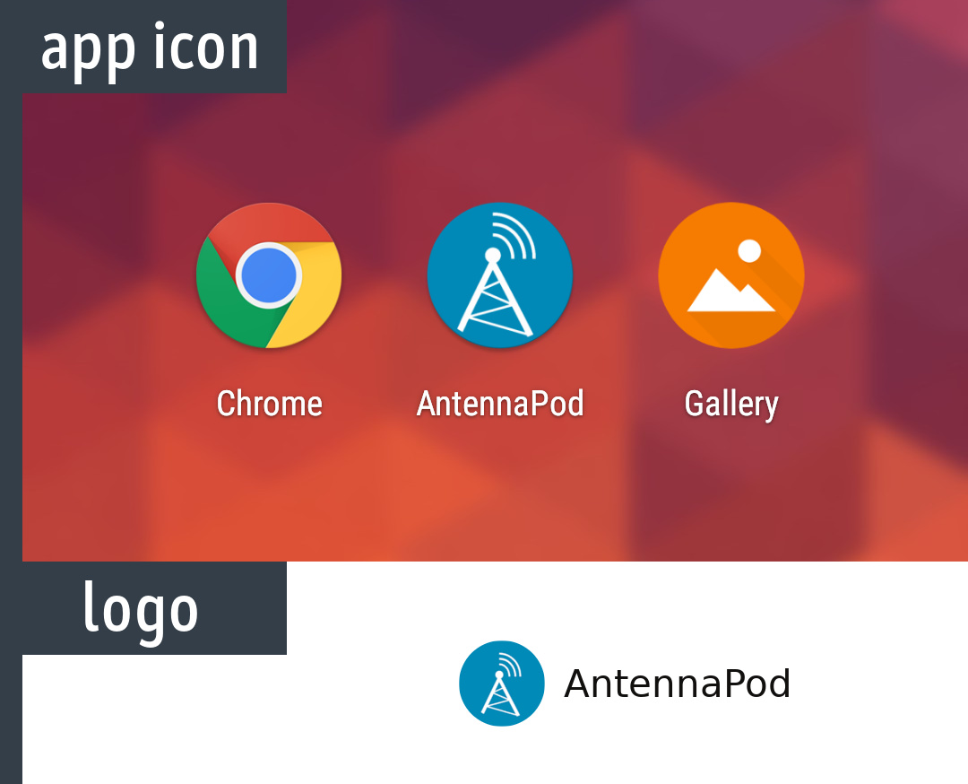 It is with great pleasure that we can announce the new AntennaPod app icon and logo by 221pxls!