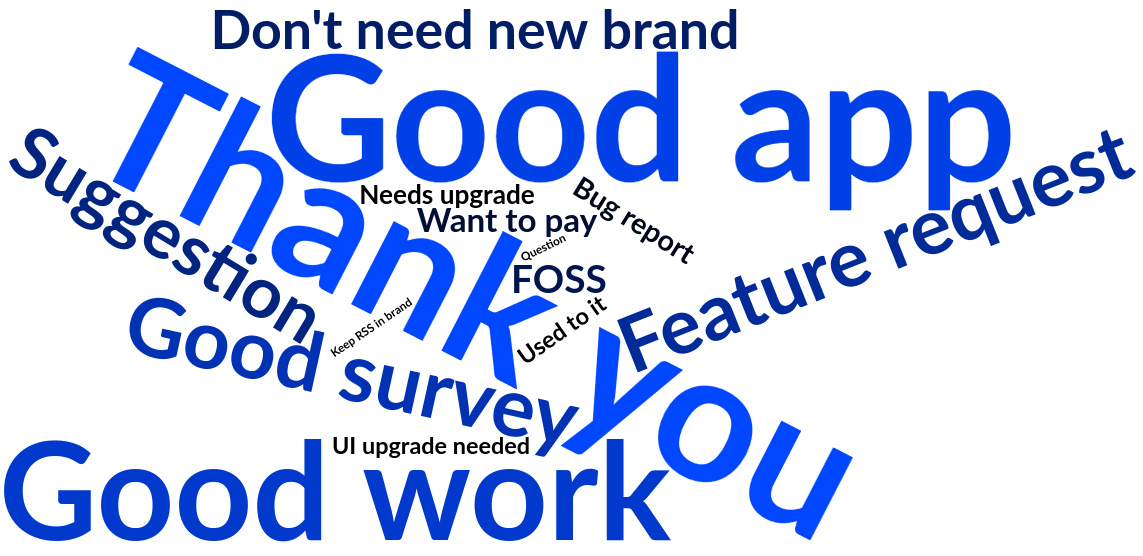 Some of the plain-text comments contained support questions or feature requests. Given that we don’t know who sent these comments (it’s a survey, after all) it’s not possible to reply to them, but rest assured that we’re keeping them in the back of our minds. If you did have a support question, feature request or bug report, please create a topic in our new forum so we can help you :)